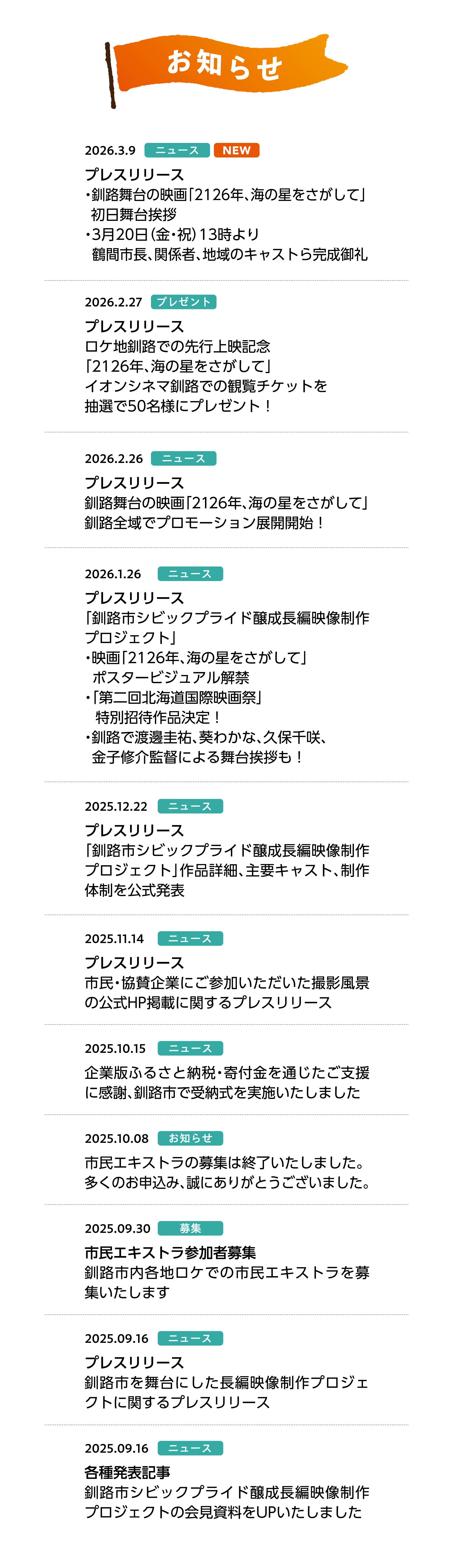 釧路市シビックプライド醸成長編映画制作プロジェクトの会見資料をUPいたしました