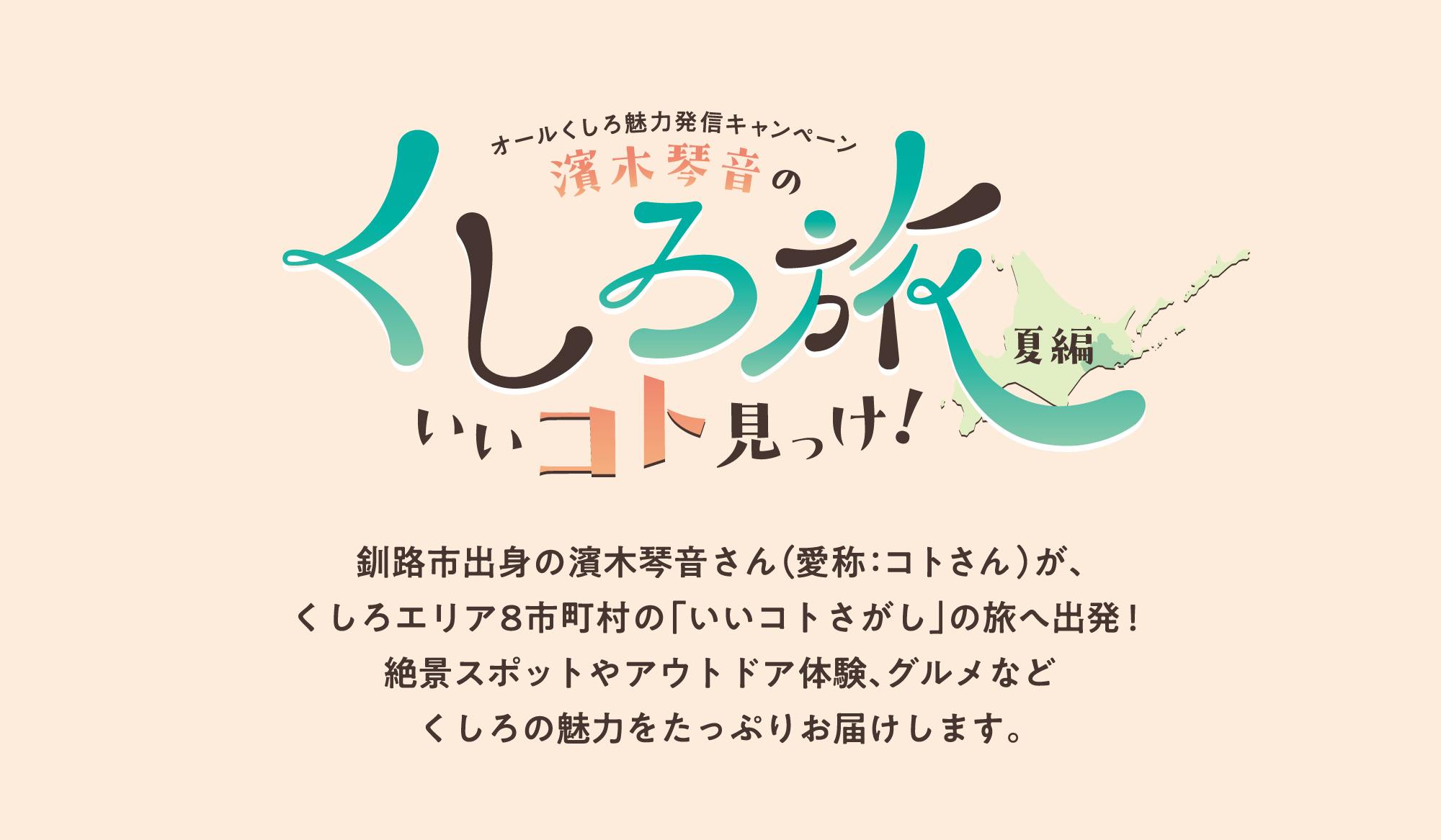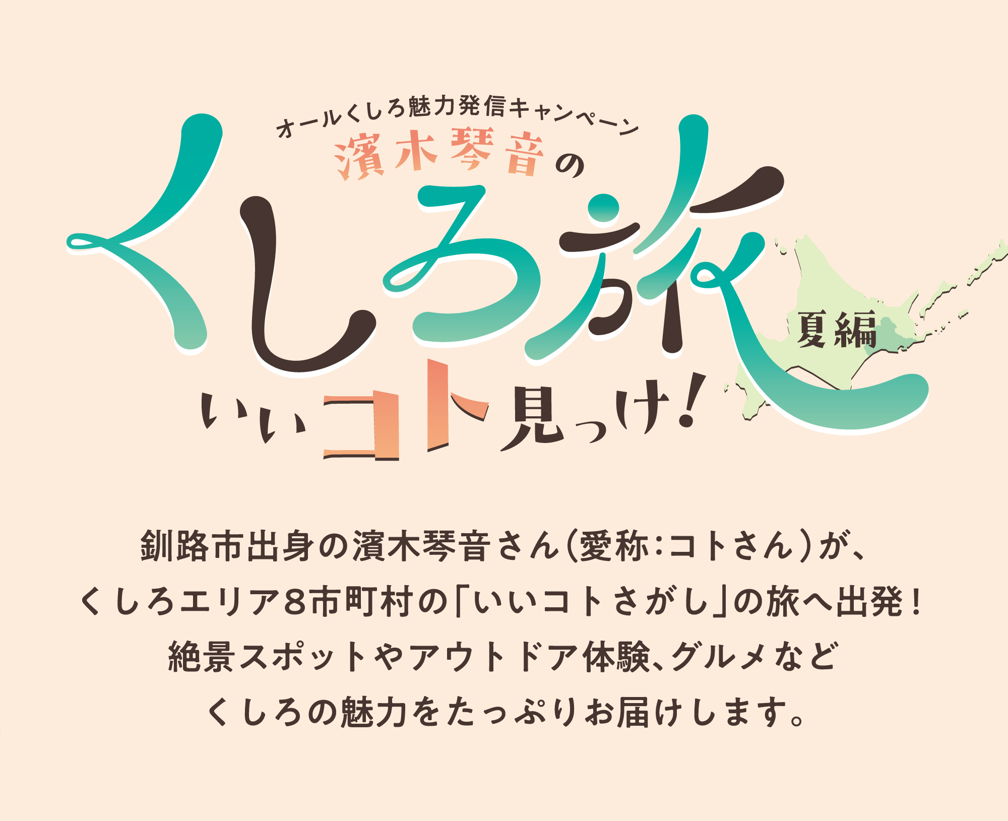 釧路市出身の濱木琴音さん(愛称:コトさん)が、くしろエリア8市町村の「いいコトさがし」の旅へ出発!絶景スポットやアウトドア体験、グルメなどくしろの魅力をたっぷりお届けします。