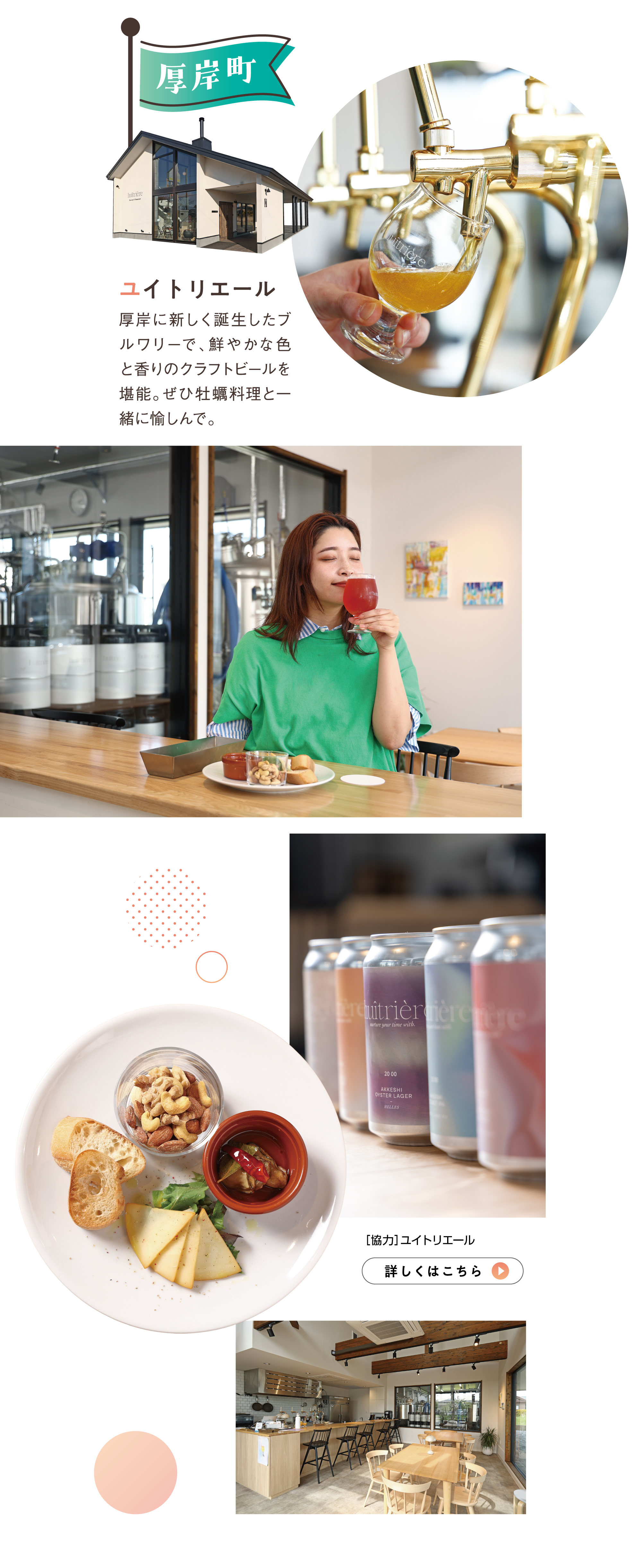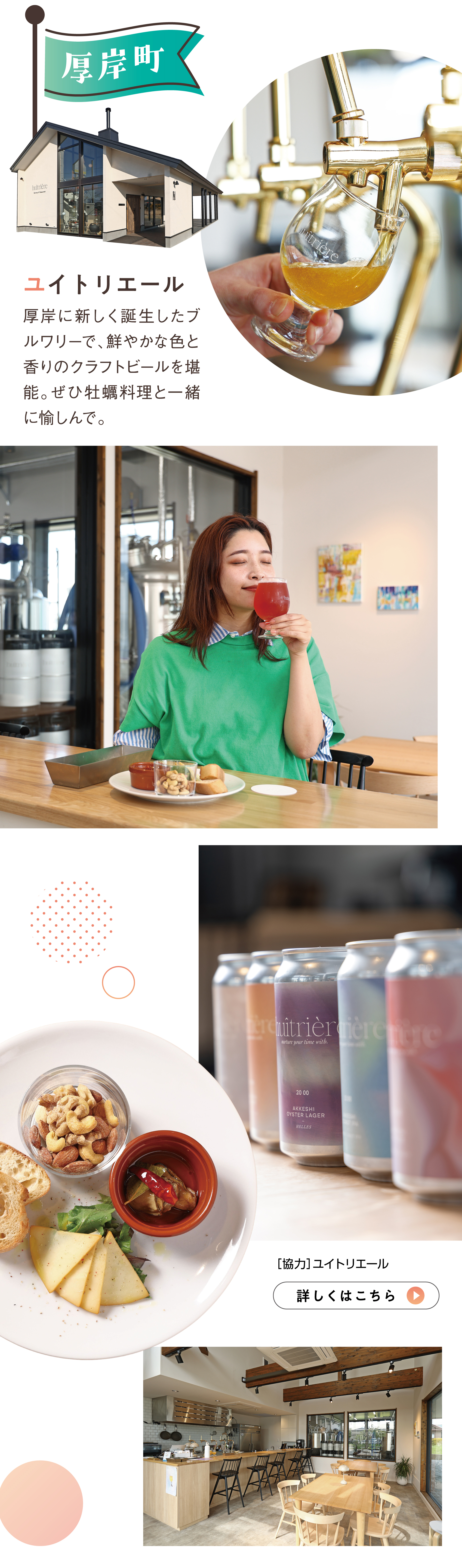 厚岸に新しく誕生したブルワリーで、鮮やかな色と香りのクラフトビールを堪能。ぜひ牡蠣料理と一緒に愉しんで。